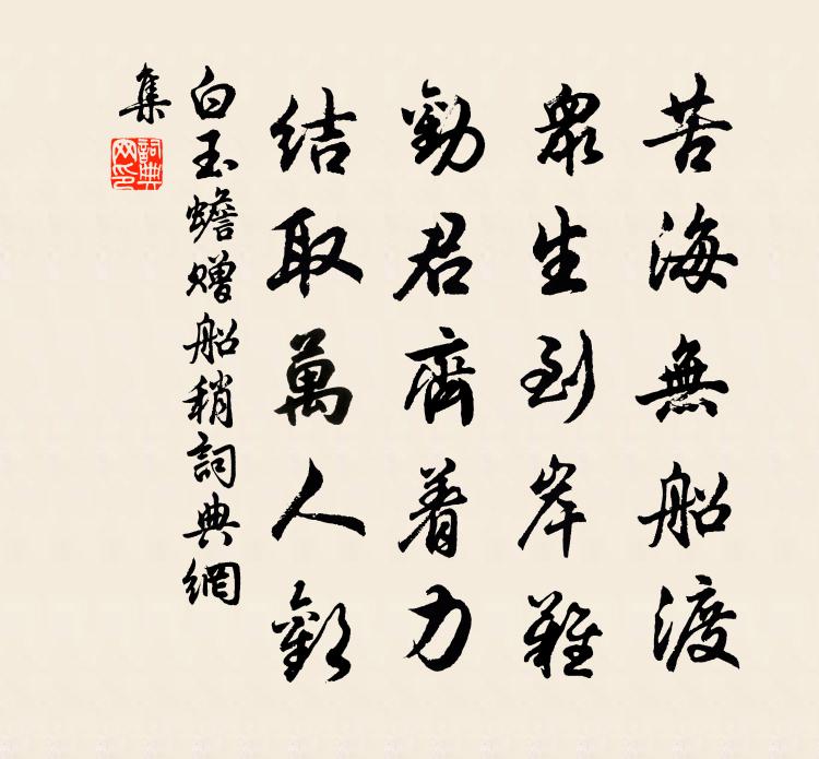 苦海无船渡,众生到岸难。劝君齐着力,结取万人欢。
